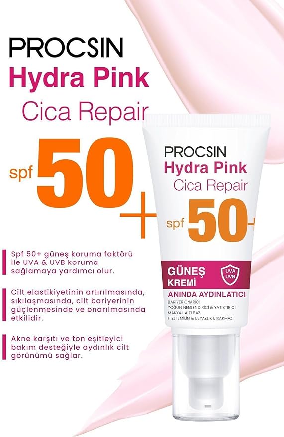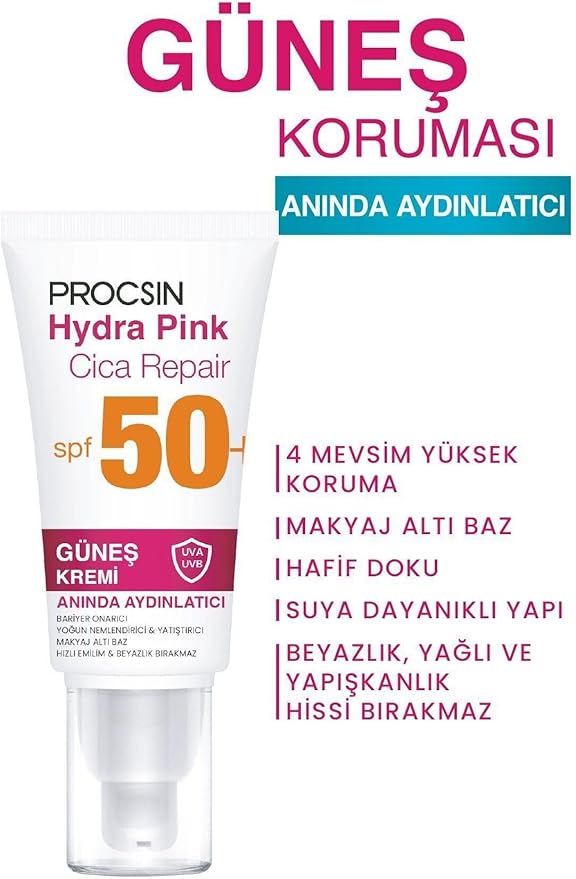 Hydra Block Pink SPF 50+ Güneş Kremi, Aydınlatıcı & Leke Karşıtı, Cam Cilt Etkisi, Tüm Cilt Tiplerine Uygun, 50 ML