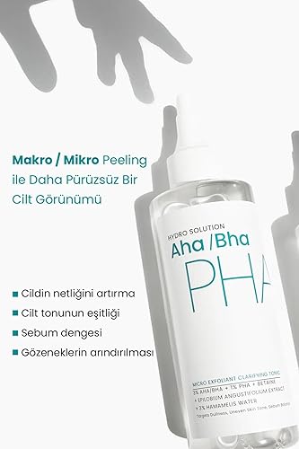 HYDRO SOLUTION AHA/BHA ve PHA Mikro Peeling Temizleyici Cilt Tonu Eşitleyici Tonik 200 Ml