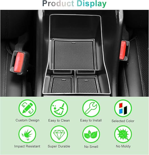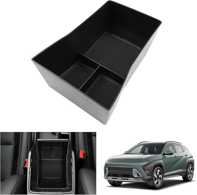 Hyunda-i Kona SX2 2024 2025 (elektronik otomatik şanzıman) orta konsol saklama kutusu, Kona 2024 kolçak düzenleyici tepsi torpido gözü, Hyundai Kona 2024 aksesuarları ile uyumlu (siyah)