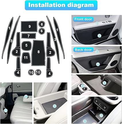 Hyundai Ioniq 5 2021-2023 ile uyumlu, kaymaz paspaslar, orta konsol, kolçak, kauçuk paspaslar, içecek tutucu, mat, kaymaz kapı dikişi paspasları, kapı yarığı matı, 17 adet