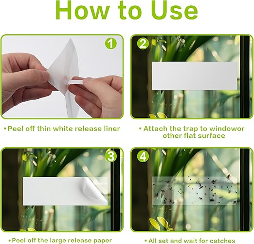 İç mekanda sinek kapanı Şeffaf: Sinek tuzaklarımız ışığı saptırmaz, bu da onu sinekler için görünmez kılar. Rahatsız edici uğultu seslerine veda edin. Tuzaklarımız su geçirmez, kullanımı kolay, tek kullanımlık ve toksik değildir. En iyi kullanım için, ince beyaz astarı soyun ve böceği yapıştırın ve kapanı pencereye uçun, astarın geri kalanını çıkarın ve tuzağın uçan böcek sorunlarınızla ilgilenmesine izin verin!