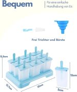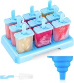Ice Lolly Kalıpları 9 Buz Dondurma Kalıpları Yeniden Kullanılabilir Kendin Yap Fikirleri Buz Lolly Çubuk – Temizleme Fırçası ve Silikon Katlanır Huni ile birlikte gelir