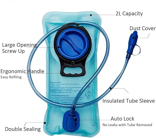 İçecek torbası, su torbası, su torbası, su torbası, spor sırt çantası, hortumlu, BPA içermez, 2 litre, yürüyüş, bisiklet, tırmanma, dış mekan aktiviteleri için, 2 adet