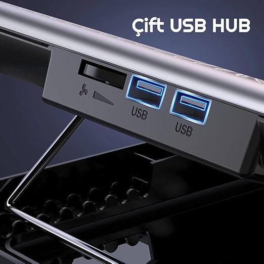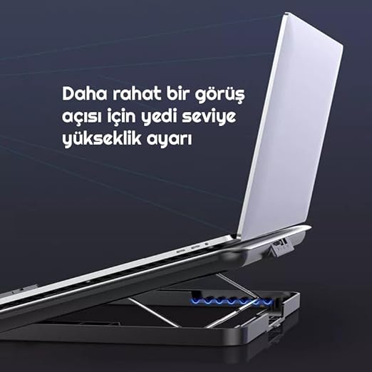 IceCoorel Alimünyum Hız Ayarlı Notebook Soğutucu Ergonomik Stand Alt Başlık : Sessiz Güçlü Fan–12~17inç Uyumlu–Yedi Seviye Stand–2xUSB Hub