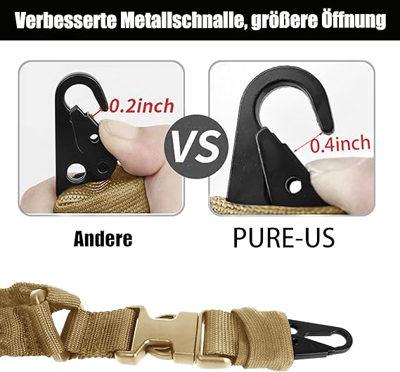 Esnek metal kanca: Güncellenmiş daha büyük metal kanca, kolayca paslanmayan ve çizilmeyen profesyonel bir anti-oksidasyon kaplamasına sahiptir, bu da askının tüfeğe çok iyi uymasını sağlar. Kancalarımızın tasarımı daha esnektir ve el değiştirmek daha uygundur.