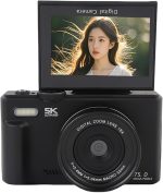 Için 5K Dijital Kamera, 3 180 ° Flip Ekran, 18x Dijital Zoom Otomatik odaklı WiFi 75MP Vlog Kamera, Mikrofonda Yerleşik, Yeni Başlayanlar Için 8 Mod (BLACK)
