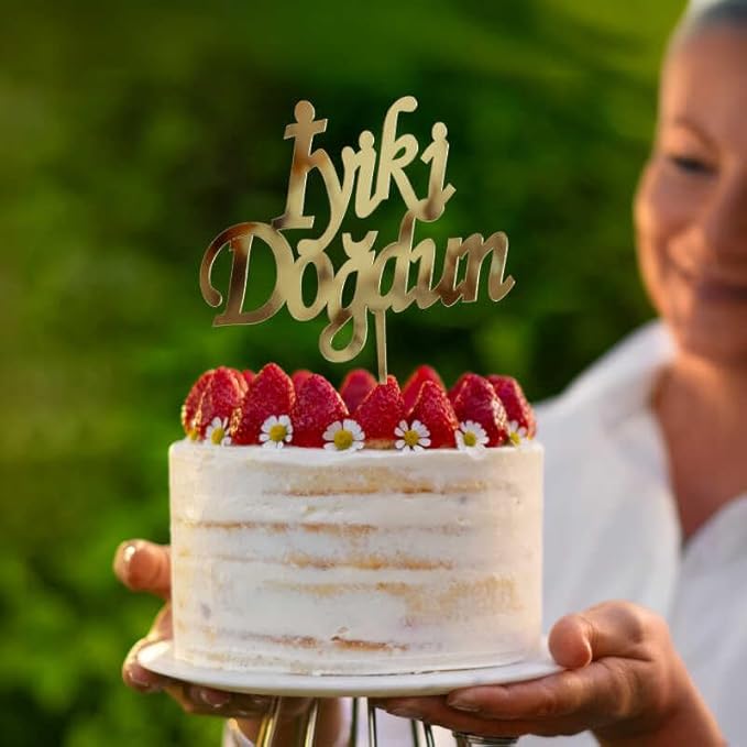 için iyiki Doğdun yazısı Doğum Günü Yaş Günü Yıl Dönümü Pasta Dekorasyonu, Kişiselleştirilmiş Pasta Süsü (Gold Renk)