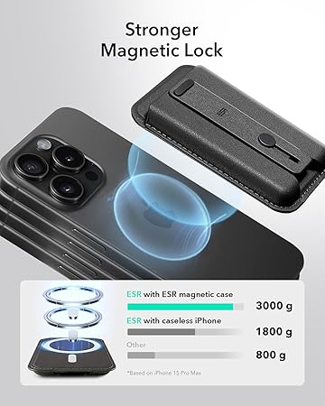 Daha Güçlü Manyetik Kapatma: ESR’nin 3.200 g tutma kuvvetine sahip manyetik telefon kılıfı, resmi markadan %275 daha güçlüdür ve cüzdan standınızın güvenli bir şekilde kapalı kalmasını sağlar.