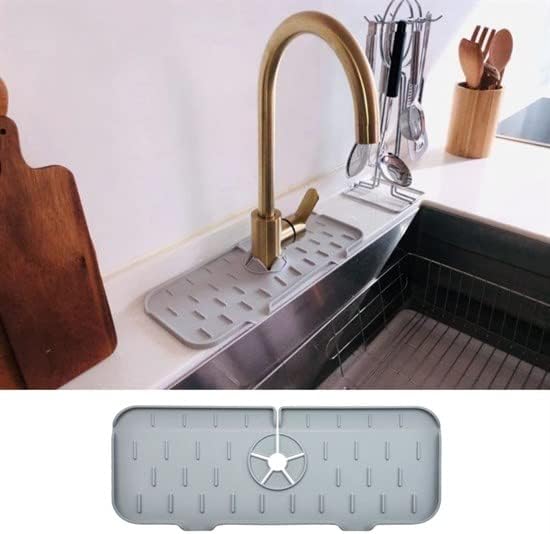Lavabo İçin Silikon Esnek Mat Musluk Sapı Damlama Tutucu Raf Mutfak Tezgahı Sıçrama KorumaMusluk sıçrama koruması su tahliyesi için ideal bir üründür ve tezgahınızı kuru tutar