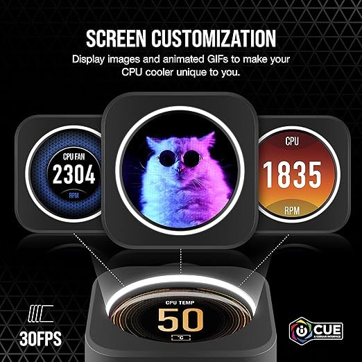 iCUE Elite CPU Soğutucu LCD Ekran Yükseltme Kiti (Özelleştirilebilir Ekranlı IPS LCD Ekran, 24 Bit Renk Derinliği, 16,7 Milyon Renk, 24 RGB LED’li Yüzük, iCUE Yazılımı ile Uyumlu) Siyah