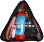 Paket içeriği: Fermuarlı taşıma çantası 1 adet boyunluk 2 adet plastik reflektör 1 adet çekme halatı 1 adet plastik takoz 1 adet pamuk ve yarabandı 1 adet 1 kg yangın söndürme tüpü (dolum tarihi yeni olup, tekrar dolum tarihi 4 yıl sonrası için etiketlidir