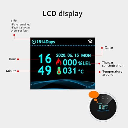 ile WiFi Gaz Kaçağı Dedektörü, USB ile Çalışan, Ekranlı, Sesli Alarm, Ev, Mutfak, Karavan için Doğalgaz ve Propan Gazı Tespiti