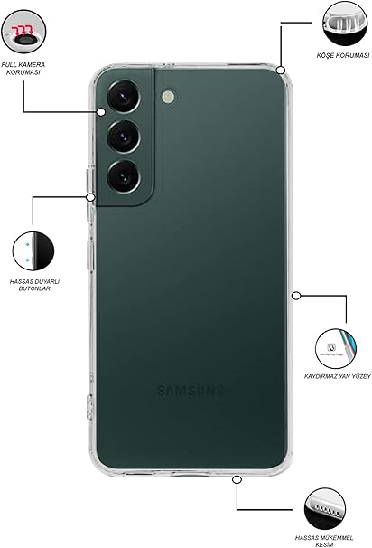 İLETİŞİM Samsung Galaxy S22 Tıpalı Kamera Korumalı Şeffaf Premier Kılıf