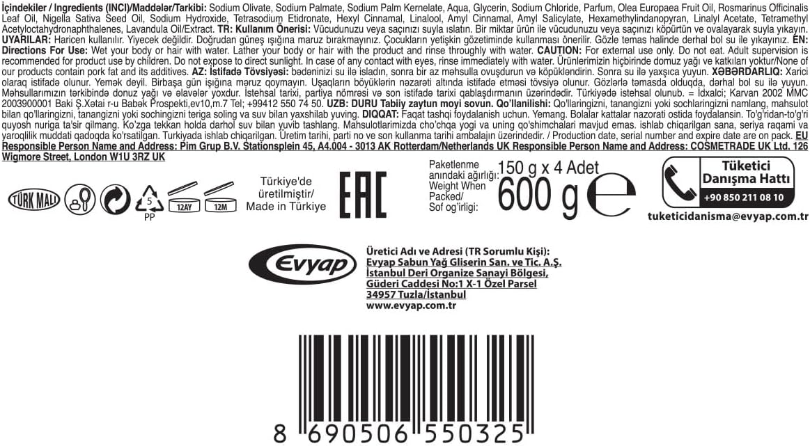 İlk Hasat Doğal Zeytinyağı İçerikli Sabun 4 × 150 gr