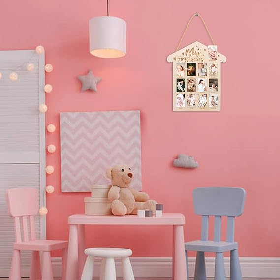 İlk Yılım Fotoğraf Ekranı Ahşap Pano, Bir Yıllık Ahşap Fotoğraf Panosu, Birinci Yıl Resim Çerçevesi, Çocuk Hatıra Fotoğraf Çerçevesi 12 Aylık Resim Çerçevesi Ahşap Fotoğraf Panosu,