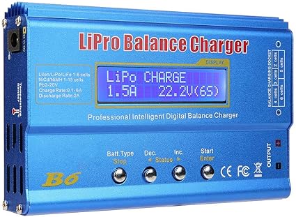 Bu dengeli LCD dijital şarj cihazı, yeni nesil A 123 (Li-Fe) sistem piliyle uyumludur. Lityum İyon / LiPo pil sayısı 1 ila 6 hücre ve NiCd / NiMH pil sayısı 1 ila 15 hücredir.