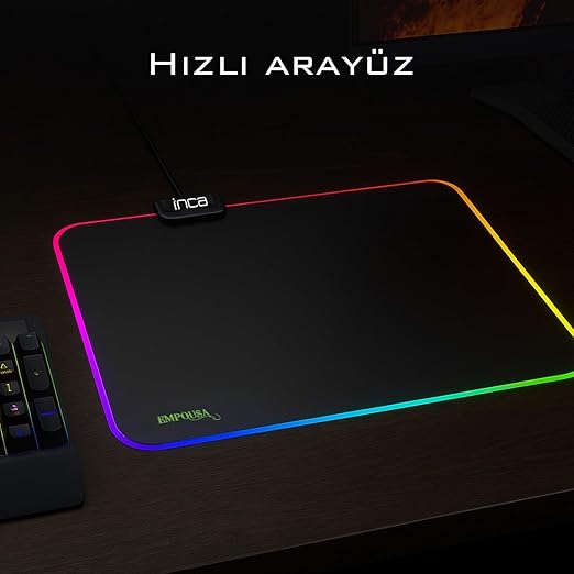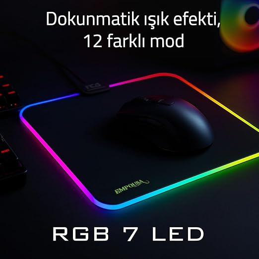 IMP-024T EMPOUSA RGB 7 LED MEDIUM MOUSEPAD (320X270X3MM),12 Farklı Değişebilen Dokunmatik Işık Efekti,Hızlı Kayan Yüzey, Kaymaz Kauçuk Taban