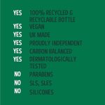 %100 doğal koku ve uçucu yağlar %99 doğal içerikli formül Organik içerikler Paraben ve SLS içermez Hayvanlar üzerinde test yapmayan ve vegan %100 geri dönüştürülmüş ve tekrar geri dönüştürülebilir ambalaj Doğaya ve çevreye zarar vermeden sürdürülebilir kaynaklar ile üretim