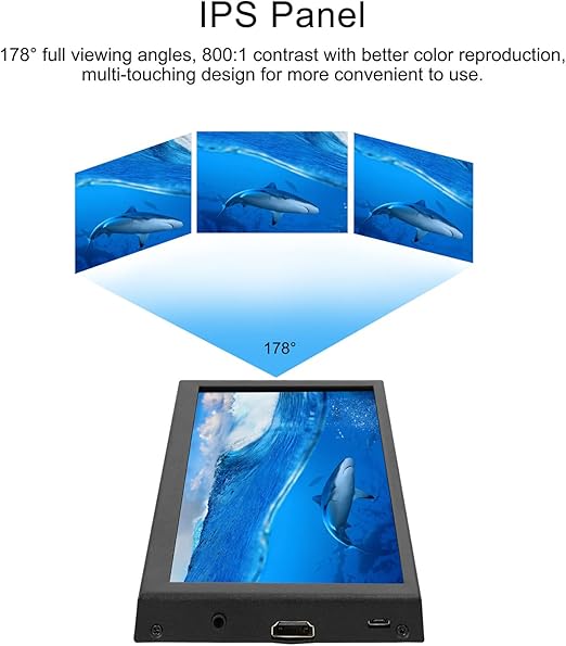 IPS Panel, 178° tam görüntüleme açıları, daha iyi renk üretimi ile 800:1 kontrast, daha rahat kullanım için çoklu dokunma tasarımı.