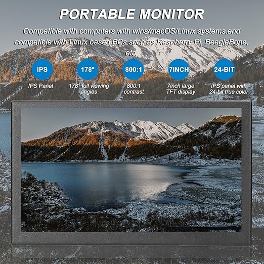inç Dokunmatik Ekran Taşınabilir 1024 * 600 Çözünürlük IPS Panel LCD Kapasitif Dokunmatik Ekran Hoparlörler ile İzleme Ekranı