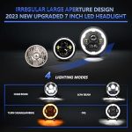 Yeni Tasarım: Yeni 7 inçlik LED yuvarlak far, uzun süreli parlaklığa sahip üstün kaliteli CSP çiplerini kullanır. Farklı mükemmel ışık modellerini yansıtabilen, kısa huzmenin merkezi ışık kapsamını daha geniş ve uzun hüzmenin ışık yansıtma mesafesini daha uzak hale getiren 5 farklı lens tipinden oluşur. Lambanın iç kapağı mecha tarzı bir tasarıma sahiptir ve tüm lamba gövdesinin görsel etkisi büyüleyicidir.