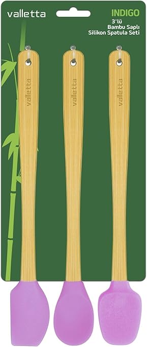 Indigo 3’Lü Pembe Bambu Silikon Spatula Seti Uzun 26 Cm Vlt1508