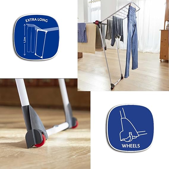 YÜKSEK KANATLAR: 30 metre kurutma alanı sağlana Vileda Infinity Flex 2-3 yıkama kapasitesine sahiptir. Yüksek kanatları sayesinde pantolon gibi uzun giysiler yere değmeden kurutulabilir.