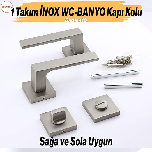 İNOX Wc-Banyo Kapı Kolu Kare Rozetli Sağa Sola Uygun İç Dış Kapısı Kilitlenebilir 1 Takım