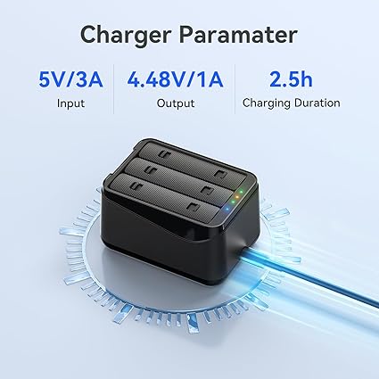 【Hızlı ve Verimli Şarj】 – Insta 360 X5 kamera pilleri için tasarlanmıştır (piller dahil değildir), bu 3 yuvalı şarj cihazı aynı anda üç pili aynı anda şarj eder.