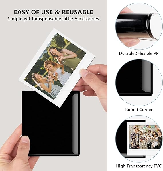 Basit ama Dayanıklı – Birinci sınıf esnek PP’den yapılmıştır, instax geniş resim çerçeveleri için olanlar basit ancak ömür boyu kullanım için dayanıklıdır, arkada buzdolabı kapısı gibi çeşitli metal panellere sıkıca tutturulmasına yardımcı olan tam bir güçlü mıknatıs malzemesi katmanı ile yüksek trasparency üst kapak canlı fotoğraflarınızı herhangi bir rezervasyon olmadan gösterir