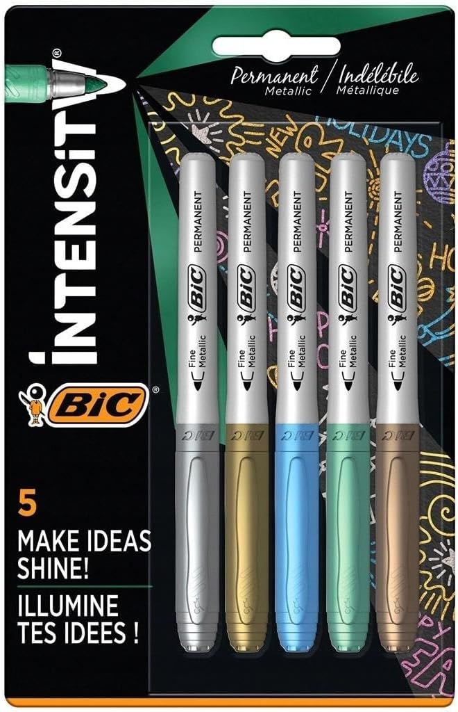 Intensity Permanent Marker Metalik Kalıcı İşaretleyiciler – 5’li Paket – Çeşitli Metalik Renkler – Koyu ve Açık Yüzeyler İçin – Düşük Koku