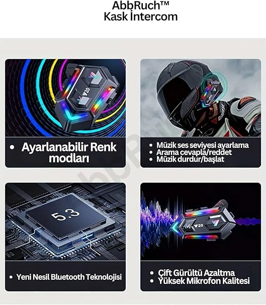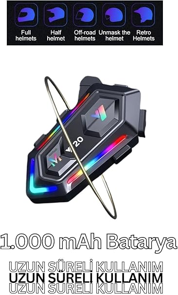 İntercom Motosiklet Kask Kulaklık RGB Işıklı Kask İçi Bluetooth Kulaklık Ve Mikrofon Su Geçirmez Y20