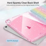 Esnek TPU tamponlu sert kabuk arka taraf iPad’inizi darbelere, düşmelere ve darbelere karşı korur. Yumuşak mikrofiber iç kısım çizikleri önler, pürüzsüz poliüretan deri toz tutmaz ve kolay temizlenir. Asla solmaz ve iPad’inizin her zaman parlak olmasını sağlayan gömülü kristal parıltılı.