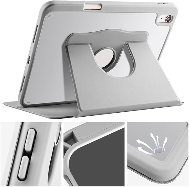 Ipad 11 inç A16 (11.Nesil) 2025 ile Uyumlu Kalem Bölmeli 360 Dönebilen Kapaklı Kılıf A3355, Gri