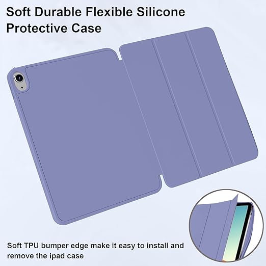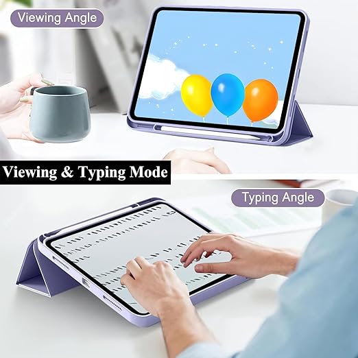 iPad (A16) 11./10. Nesil (2025/2022) ile Uyumlu Kılıf, Darbeye Dayanıklı Yumuşak TPU Kılıf, Kalem Tutucu, Ekran Koruyucu, Üç Katlı Stand, Otomatik Uyanma/Uyku, Lavanta