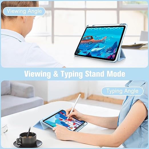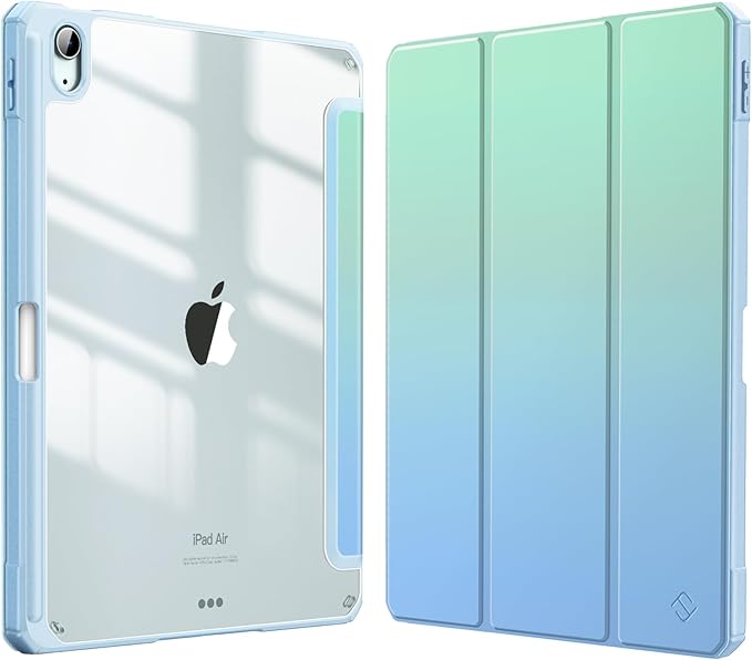 iPad Air 11 inç, iPad Air 6/5/4 nesil (2024/2022/2020) için 10,9 inç kalem tutuculu hibrit kılıf – arka tarafı şeffaf sert kabuklu darbeye dayanıklı koruyucu kılıf, deniz ombre