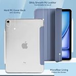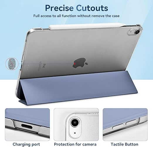 iPad Air 11 inç M3/M2 (2025/2024) için kılıf, iPad Air / 5. / 4. Nesil (2022/2020) için, Şeffaf Buzlu Arka Kapak, Lavanta Grisi İnce Stand Sert Kabuk Akıllı Tablet Kılıfı