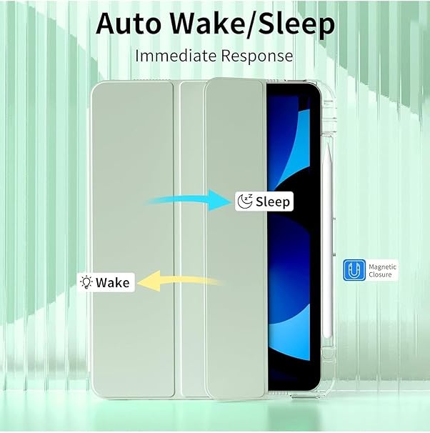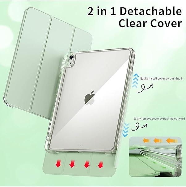 İpad Air 11inç 2024 Air 4/5/6.Nesil 10.9 ile Uyumlu Kılıf Pen Charge Şeffaf Kalem Bölmeli Case, Açık Yeşil