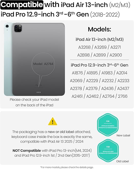 Arkadan Aydınlatmalı Klavyeli iPad Pro 12.9 ve iPad Air 13 Kılıfı – iPad Air 13 ve iPad Pro 12.9 inç 6. nesil 2022 (A2766,2764,2437), iPad Pro 12.9 inç 5. nesil 2021 (A2378,A2379,A2461,A ile uyumludur. 2462), iPad Pro 12,9 inç 4. nesil 2020 (A2229,A2069,A2232,A2233), iPad Pro 12,9 inç 3. nesil 2018 (A1876,A2014,A1895/A1983). Dikkat: Lütfen satın almadan önce model numarasını kontrol edin. (PENCIL DAHİL DEĞİLDİR)