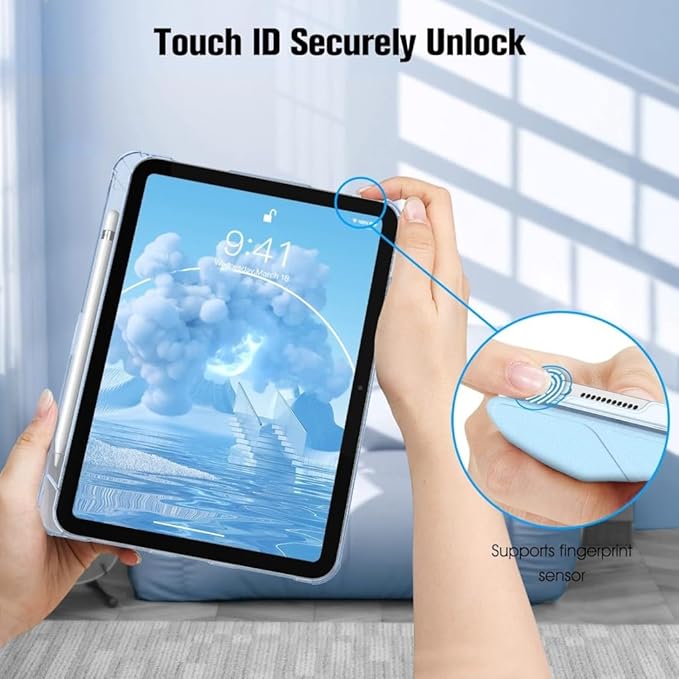 iPad Air 4/5 10.9inç ile uyumlu Kılıf Flip Cover Kalem Bölmeli PC Case (10.Nesil DEĞİL) Açık Mavi