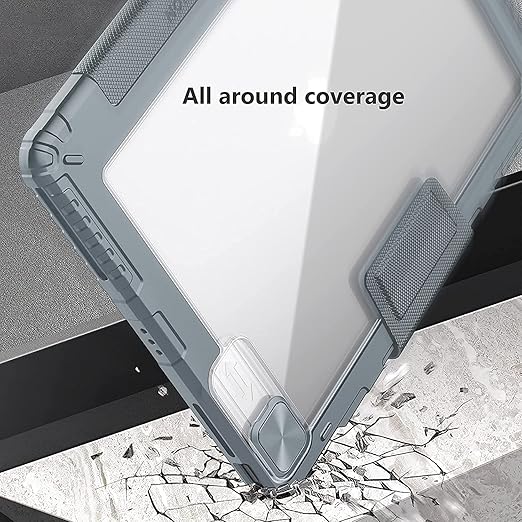 Güçlü Koruma – Yükseltilmiş Kenarlar, iPad ekranınızı korur, PC paneli ve TPU çerçevenizi gelişmiş teknolojiyle işlenen cihazınıza çift koruma sağlar. Dört köşedeki darbeye dayanıklı hava boşluğu yüksek elastik moleküller darbeyi emer, cihazınızı korur.