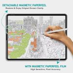 Çıkarılabilir/tekrar kullanılabilir/yıkanabilir: ①. Okurken veya televizyon izlerken, filmi kolayca çıkarabilir ve orijinal ekranın renginin ve netliğinin tadını çıkarabilirsiniz. ②. Çizim, yazma veya eskiz yaparken manyetik Paperfeel ile kaleminizi daha iyi kontrol edebilirsiniz. ③. Uzun süreli kullanımdan sonra her iki taraftaki manyetik şeritlerin emilmesi zayıflarsa, manyetik şeritleri lütfen su ile temizleyin.