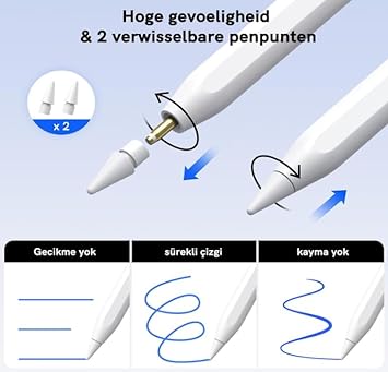 IPad stylus Tabletler Için Dokunmatik Kalem Avuç içi Reddetmei Eğim Özelliği Aktif Kalem Özel Yazı Çizim Kalemi Uyumlu iPad Pro/iPad Mini/iPad Air 2 Adet Yedek Uç İle Birlikte