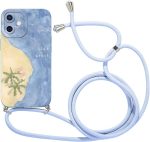 iPhone 12 Mini için cep telefonu bandı cep telefonu kılıfı, bantlı, estetik çiçekler plaj desenli kılıf zincir kılıf, silikon koruyucu kılıf, ipli kolye kılıfı, iPhone 12 Mini 5,4 inç için