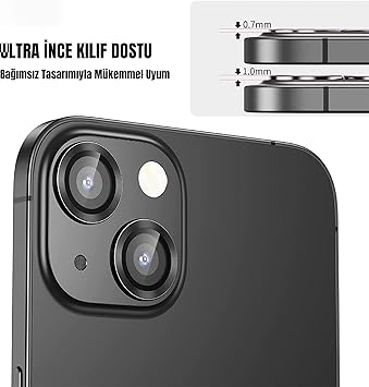 iPhone 13 için Kamera Koruyucu İphone Alüminyum Alaşım Çerçeveli Tempered Glass iPhone Kamera Lens Koruyucu (SİYAH)