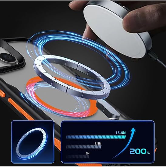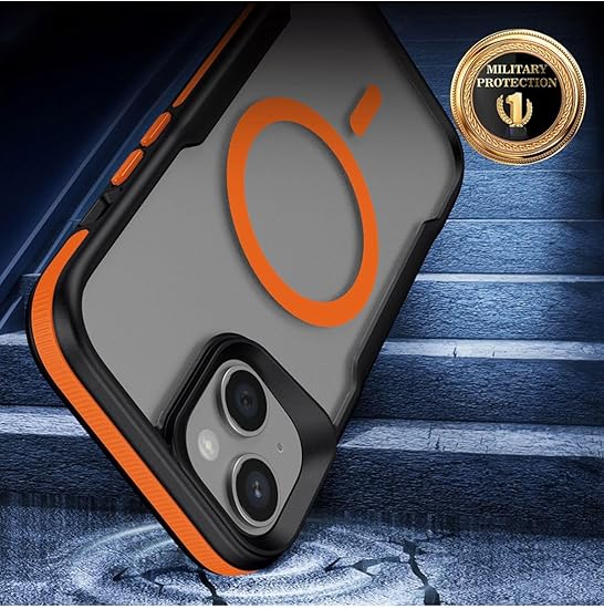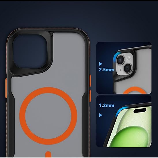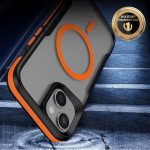 iPhone 13 ile uyumlu Zore Lamer Kapak MagSafe destekli Turuncu Kenarlı Mat Buz Şeffaf Kılıf – Airbag Köşe Koruma, Kamera Korumalı