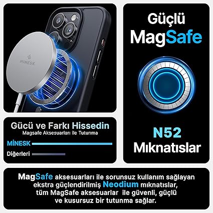 “iPhone 13 ve 14 için Magsafe ile Uyumlu Fusion Mat Serisi Kaliteli Orijinal Versiyon Kılıf Metal Tuş Takımı ve Ultra Güçlü Gerçek Mıknatıslar Şık Tasarım Kılıf (Siyah, 13-14)” için yorum yapan ilk kişi siz olun