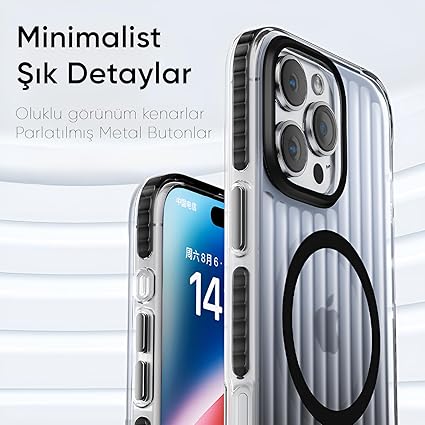 iPhone 15 Pro Max için Elite Serisi MagSafe ile Uyumlu Arkası Yarı Saydam Parmak izi Tutmayan ve Çizilmeyen Polikarbonat Kenarları Yumuşak Silikon Kılıf (Siyah, 15 Pro Max)