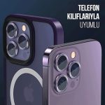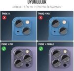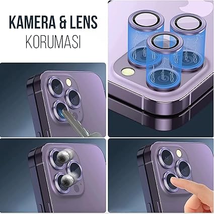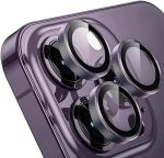İphone Alüminyum Alaşım Çerçeveli Tempered Glass Kamera Lens Koruyucu (iPhone 14 Pro Max Mor)