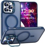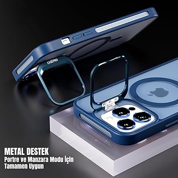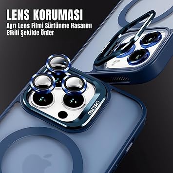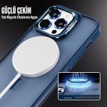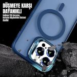iPhone için Kılıf Kamera Korumalı Magsafe Wireless Şarj Özellikli Lens Hediyeli Mat Şeffaf Renkli Standlı Kılıf (LACİVERT, iPhone 13 Pro)
